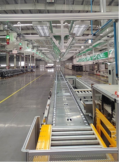 線體采用摩擦輪運輸工裝板,各個摩擦輪之間通過鏈條連接,動力來源于減速電機,線體結(jié)構(gòu)可分為環(huán)形、單層、雙層(因成本考慮一般雙層的下層采用倍速鏈設(shè)計),整線采用PLC控制,方便快捷。